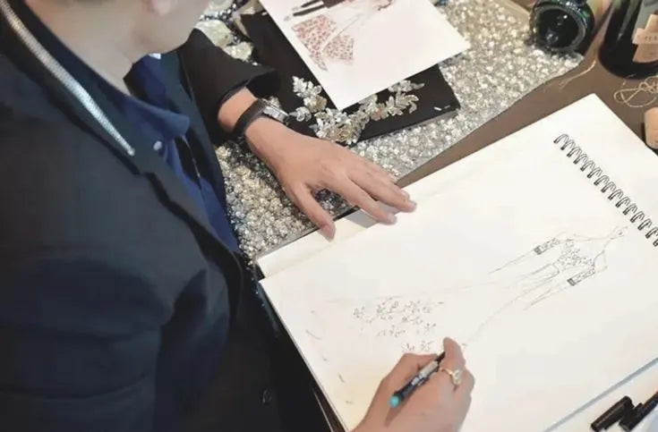 The first step to your couture order is the consultation where you will be meeting with a Client Relations specialist by appointment at any of our flagship stores in Delhi, Mumbai or Hyderabad and even Online. In this meeting we will discuss the purpose of your order in detail. All clients are encouraged to communicate any reference ideas and provide pictorial visuals for anything that they feel needs to be a part of their design. Our design consultant will offer their design solutions to ensure that every detail of the garment is noted.