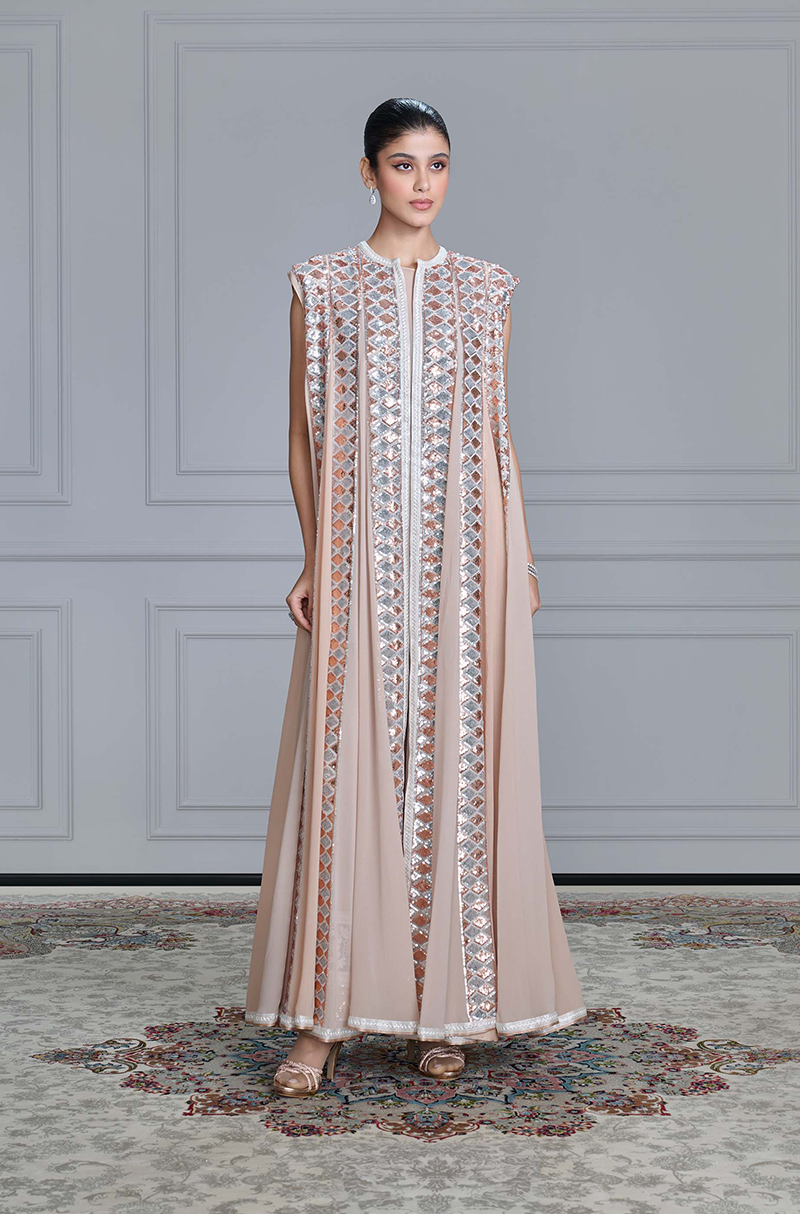 Beige Georgette sequin embroidered Jacket paired with matching tunic & pants.
