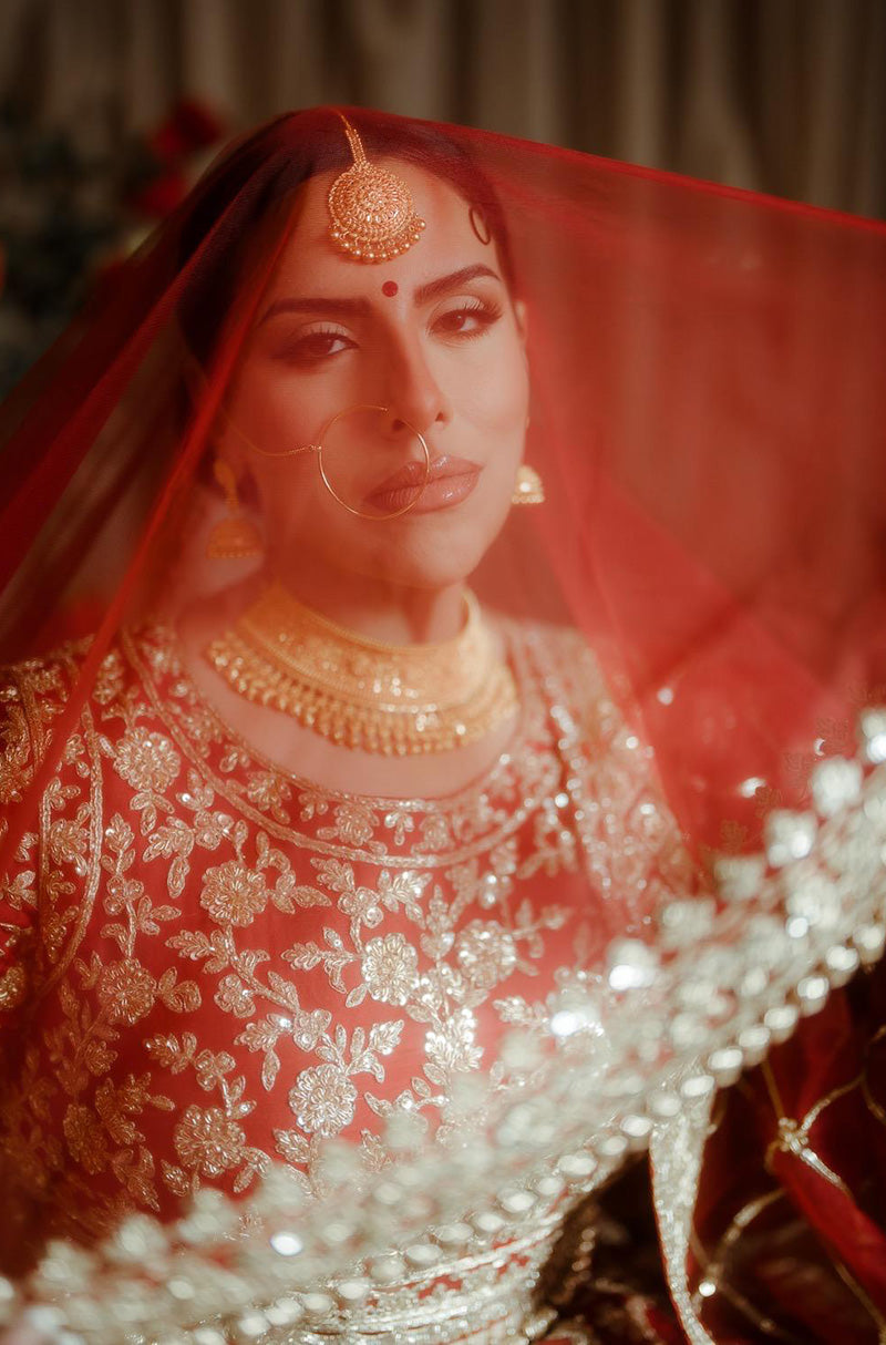 Bride: Raman Jawanda in our Scarlet Red Embroidered Lehenga Set
