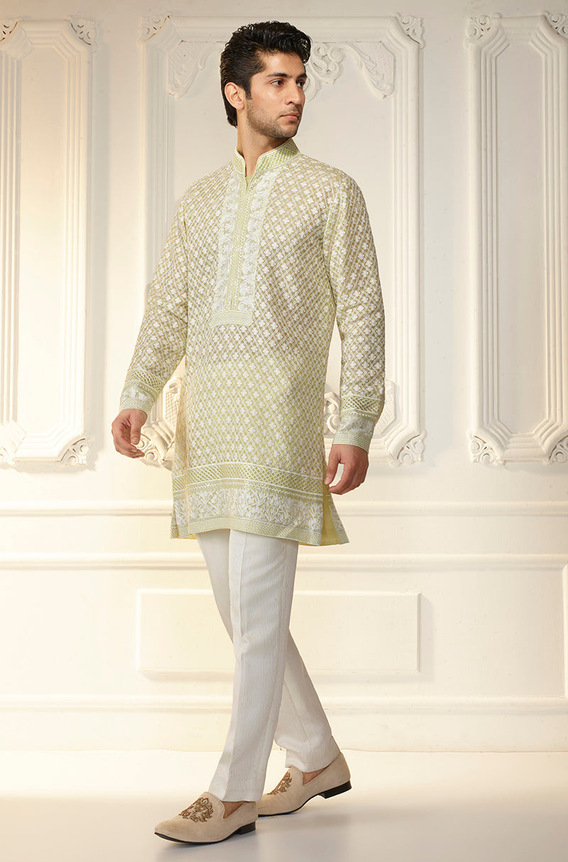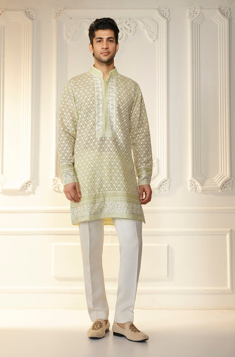 Lime Green Lattice Threadwork Kurta Set