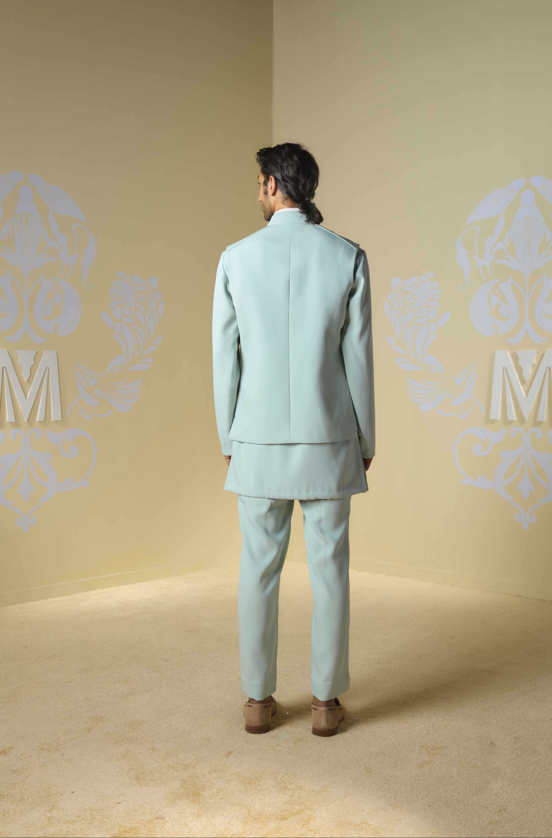 Step into elegance with this Sage Green Embroidered Bundi, paired with a coordinating kurta and trouser. Perfect for festive occasions, this ensemble combines traditional craftsmanship with modern sophistication.
